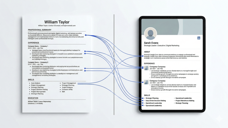 Complete alignment across both platforms for a cohesive professional story.